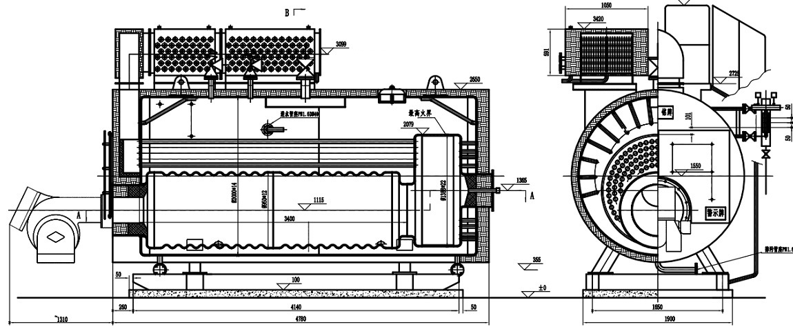 2. 外置一體化翅片管式省煤器、外置獨(dú)立式冷凝器,結(jié)構(gòu)緊湊、方便維護(hù)。